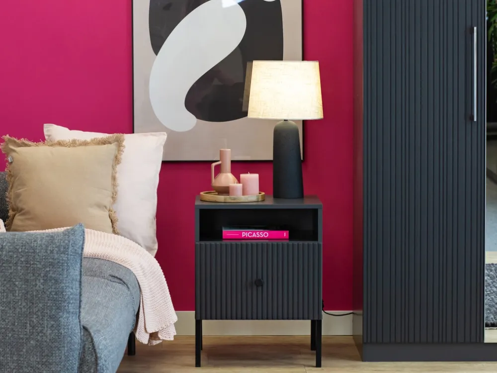 VALTEO to nie tylko praktyczna szafka nocna, ale również element dekoracyjny, który wprowadza do wnętrza lekkość i styl. Świetnie sprawdzi się zarówno w jasnych, minimalistycznych aranżacjach, jak i w bardziej wyrazistych, glamour wnętrzach. Dzięki kompaktowym wymiarom zmieści się nawet w niewielkich przestrzeniach, zapewniając jednocześnie miejsce na wszystko, co chcesz mieć pod ręką w sypialni.