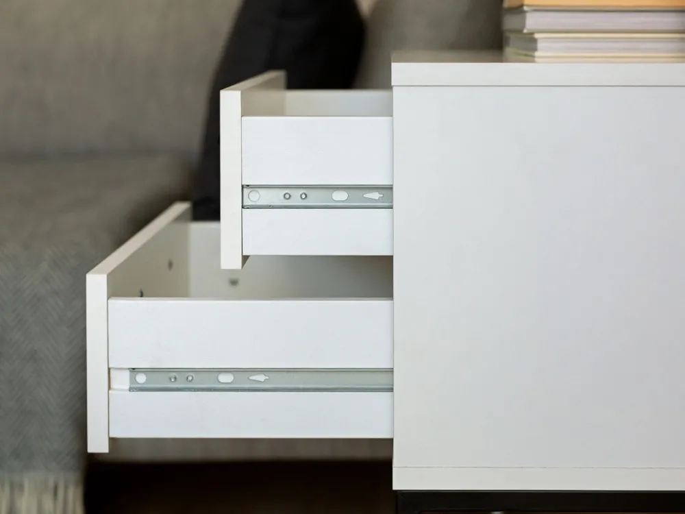 - Dwie pojemne szuflady – idealne na książki, ładowarkę czy kosmetyki