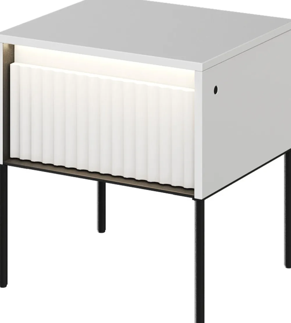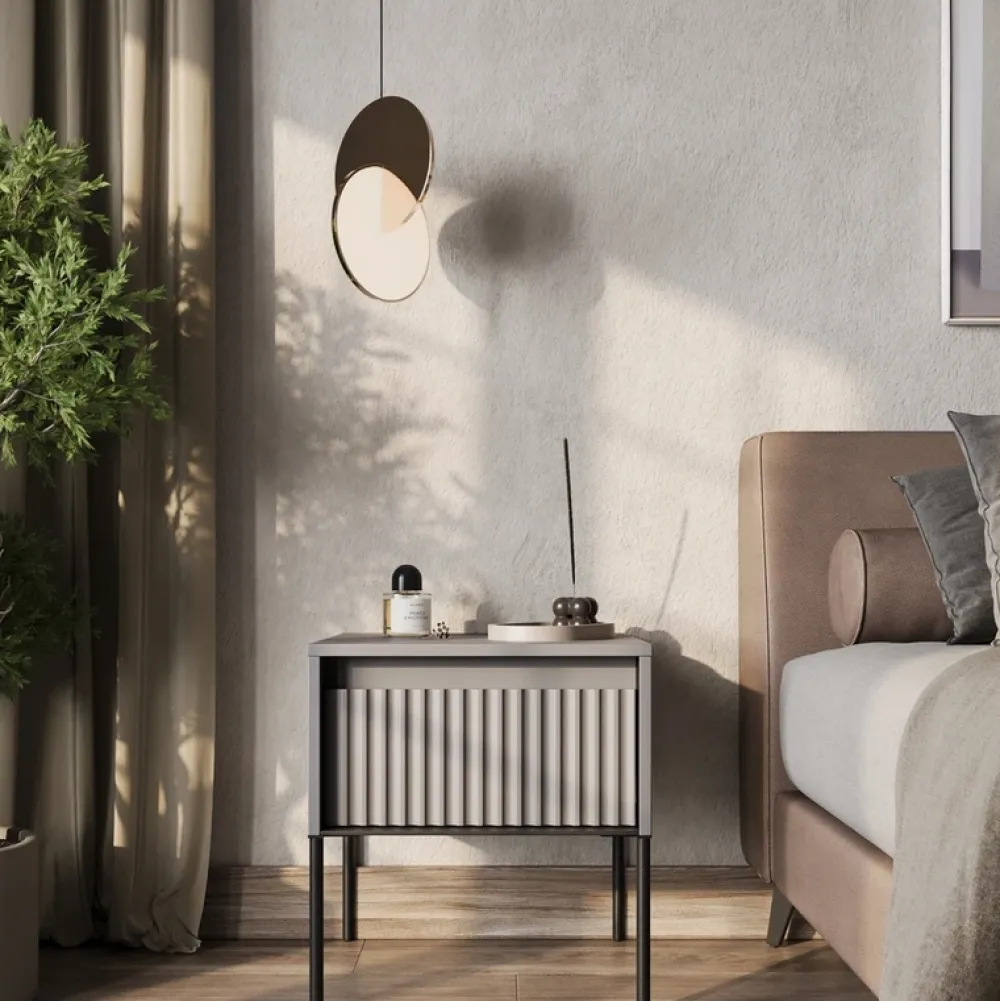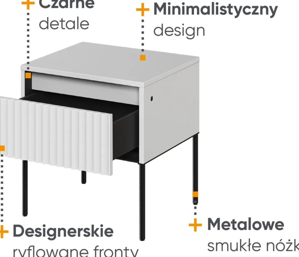 - Prezentujemy naszą szafkę nocną TREND, łącząca wyrafinowany design z praktycznością. Stojąca na wysokich nóżkach, dodaje lekkości i subtelnej elegancji Twojemu sypialnianemu wnętrzu, a ryflowane fronty dodają meblowi głębi i nowoczesnego charakteru.
