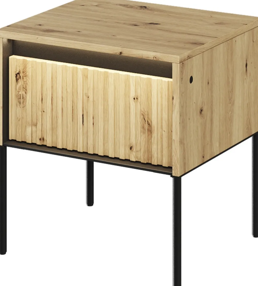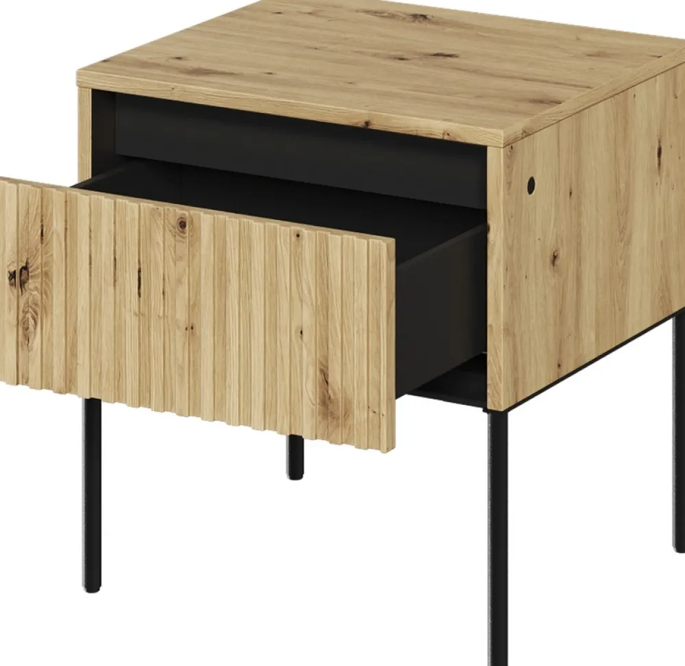 Przedstawiamy Ci wyjątkową nowoczesną szafkę nocną TREND w kolorze dąb artisan, który doda do Twojej sypialni ciepła i stylu.