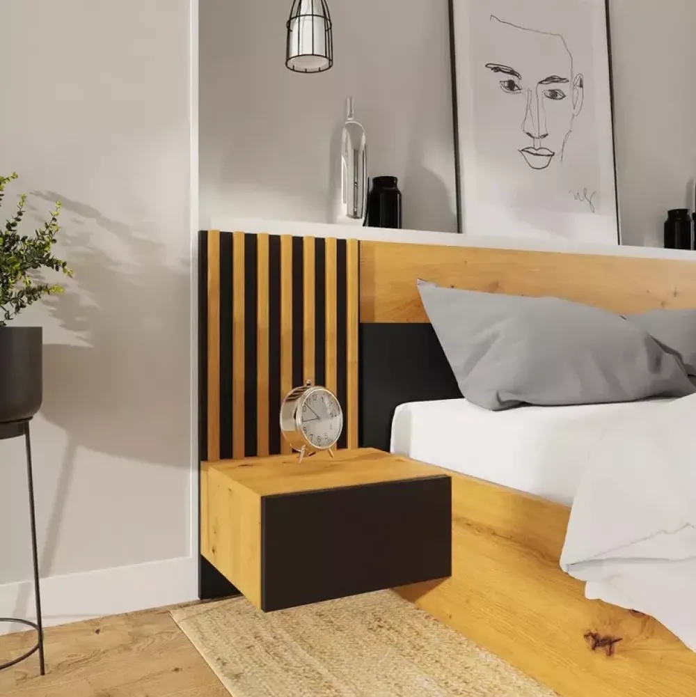 Szafka nocna NELGARI jest propozycją, która dzięki swojej ponadczasowej stylistyce doskonale sprawdza się zarówno w nowoczesnych aranżacjach sypialni, jak i tych loftowych. Szafka doskonale sprawdzi się do umieszczenia lampki nocnej, natomiast wnęka znajdująca się za jej drzwiami pozwala na umieszczenie rozmaitych akcesoriów sypialnianych.
