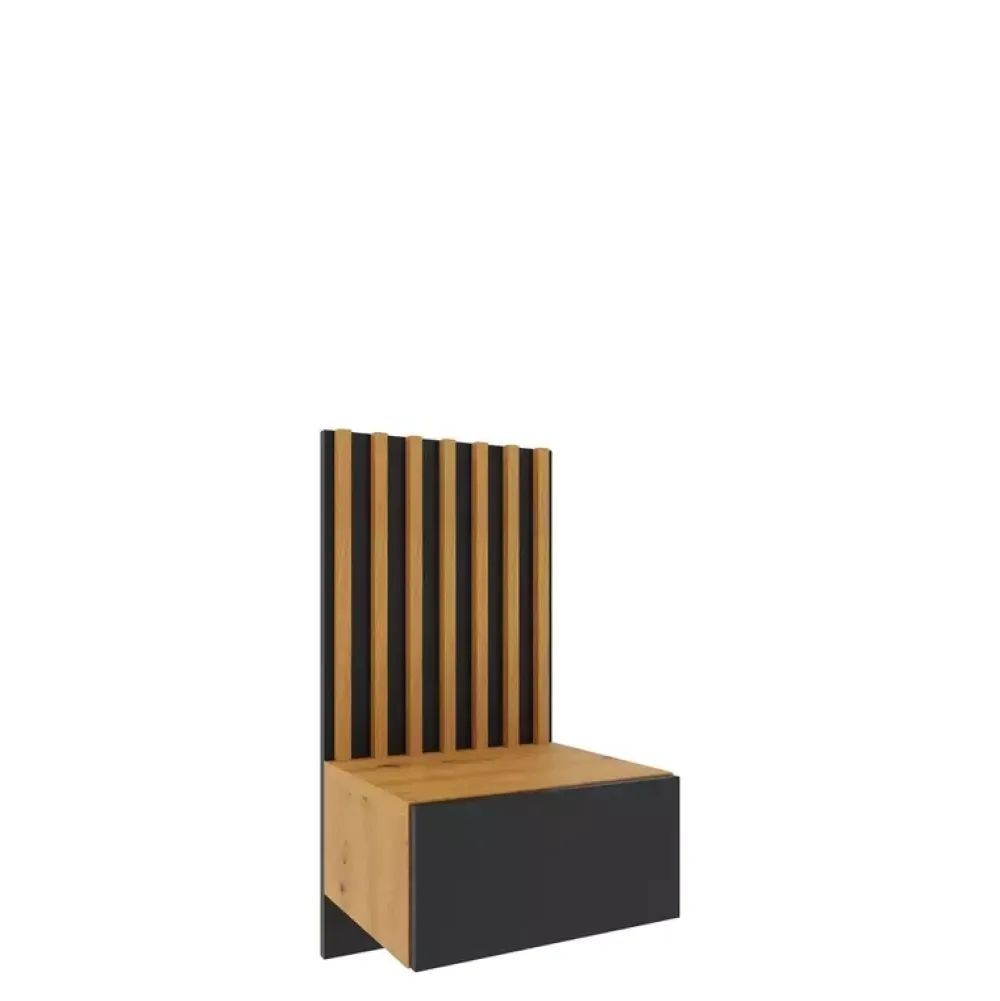 - Szafka nocna NELGARI posiada dekoracyjne lamele znajdujące się u góry, pod którymi swoje miejsce znalazła szafka. Szafka doskonale sprawdzi się do umieszczenia na niej lampki nocnej, aby móc cieszyć się dodatkowym światłem.