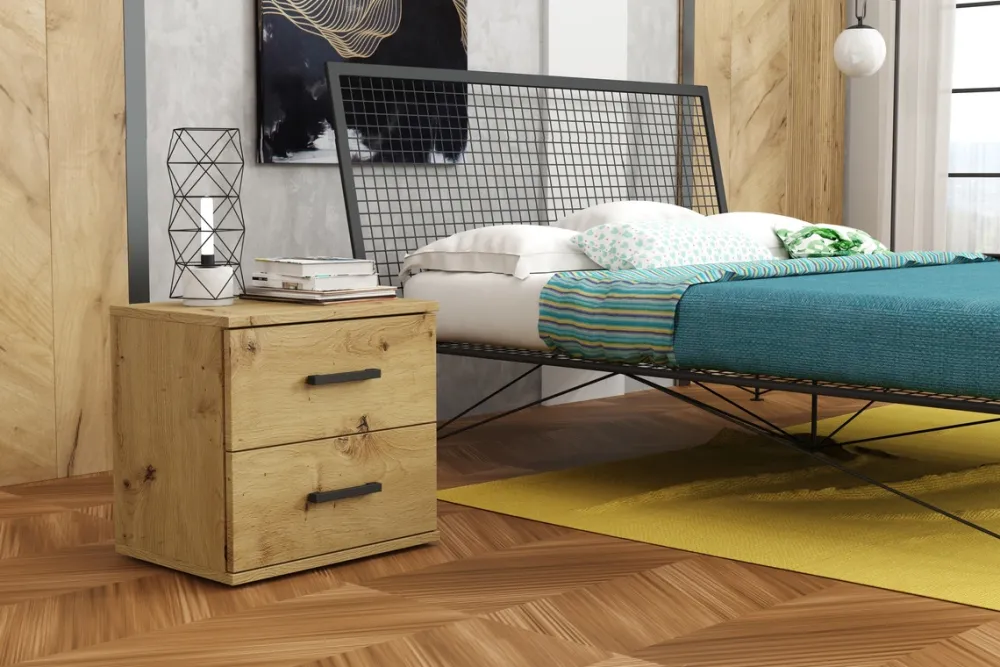 Nowoczesna szafka nocna do sypialni GRETA z dwiema szufladami to funkcjonalne i nowoczesne rozwiązanie. Jej kompaktowy rozmiar sprawia, że mebel prezentuje się minimalistycznie, a jednocześnie oferuje wystarczająco dużo miejsca na przechowywanie.