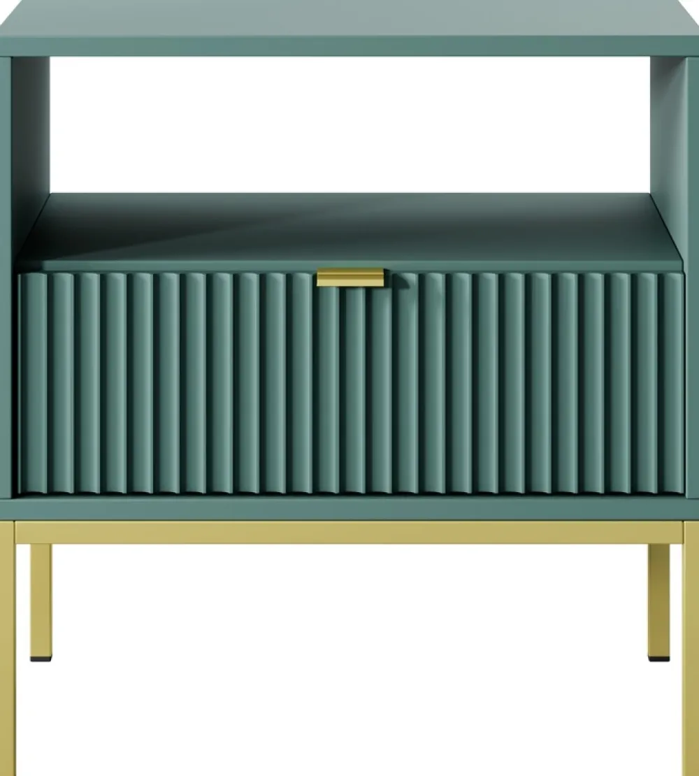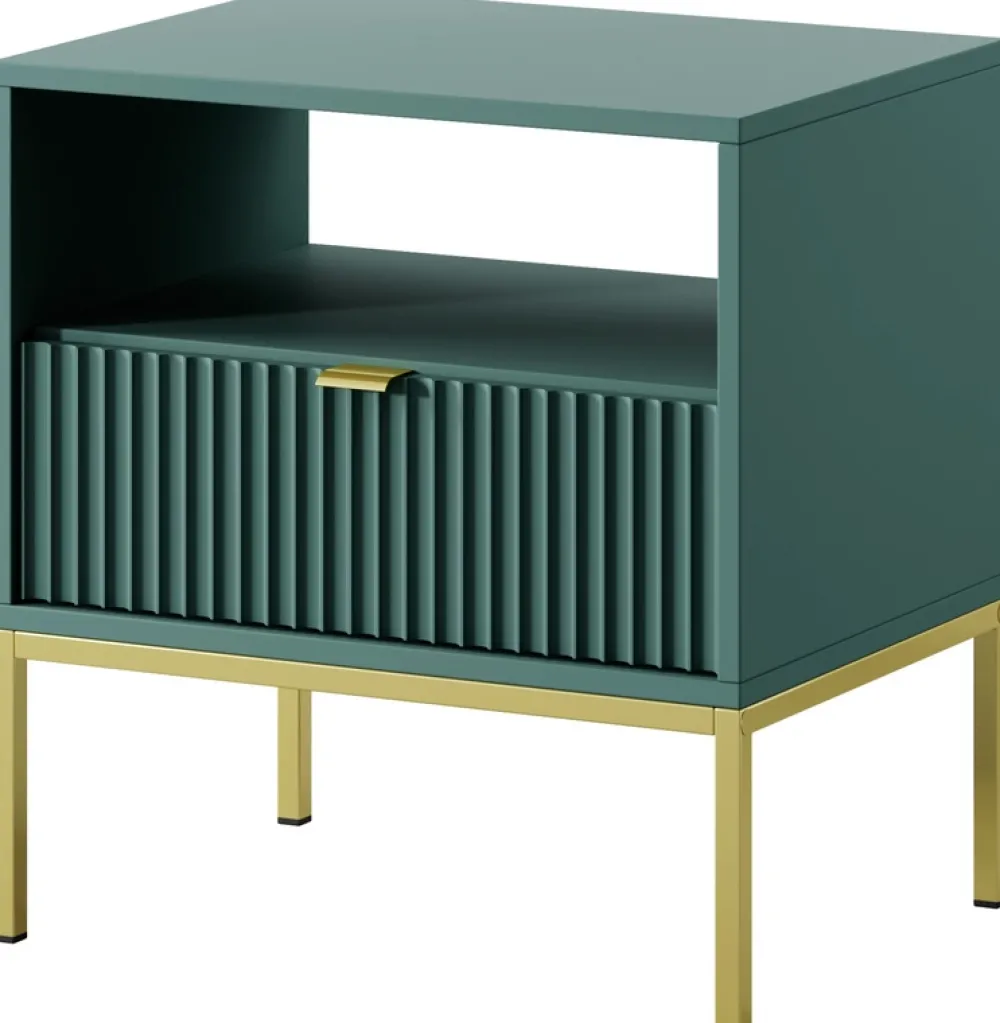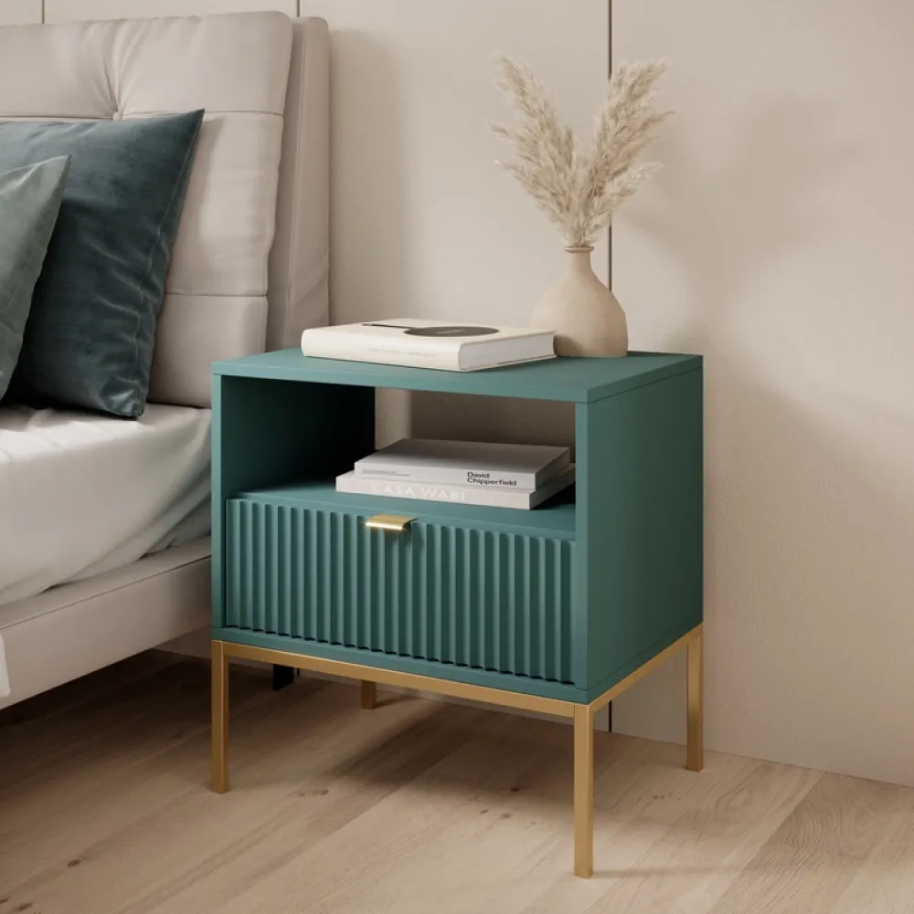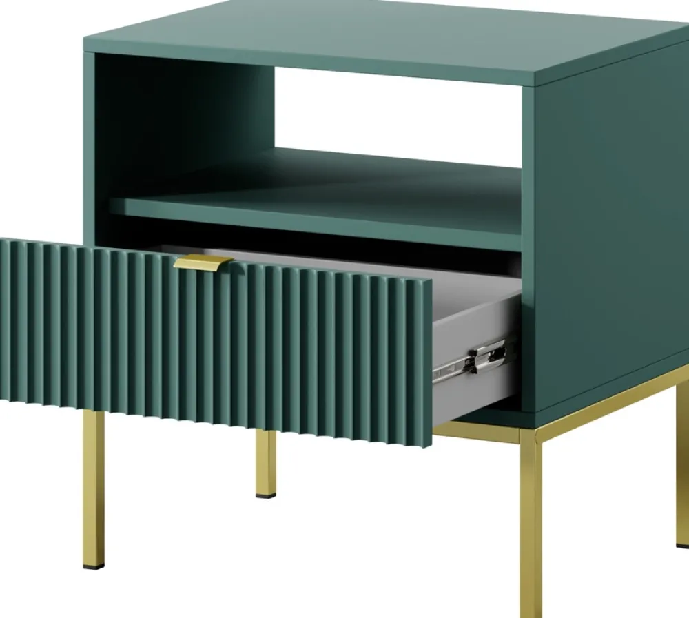 Szafka nocna AVANTI to kwintesencja nowoczesnego designu i funkcjonalności. Szafka nocna została wyposażona w pojemną szufladę na prowadnicach kulkowych, zapewnia płynne i ciche otwieranie. Aluminiowy uchwyt dodaje szafce subtelnego, ale wyrafinowanego akcentu, doskonale komponując się z metalowymi nóżkami.