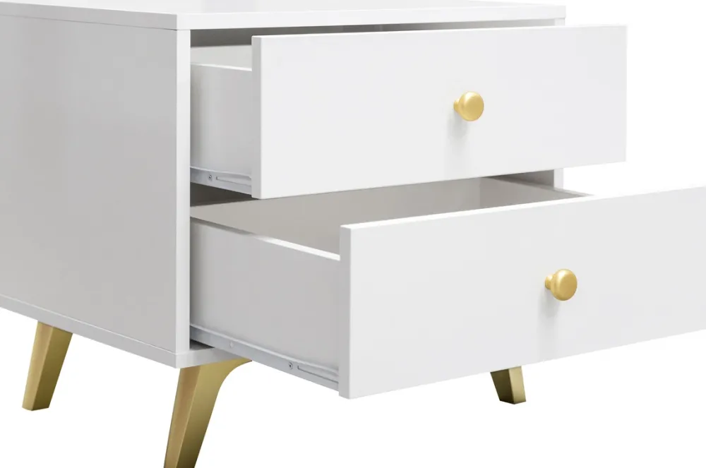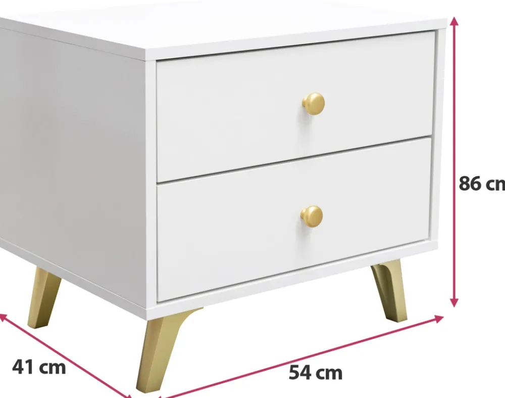- Szafka nocna z szufladami 54 cm SELMA w minimalistycznym stylu to świetna propozycja na uzupełnienie kolekcji mebli w sypialni. Szafa posiada dwie głębokie szuflady, które poruszają się na prowadnicach rolkowych. Uchwyty wykonane w złotym kolorze.