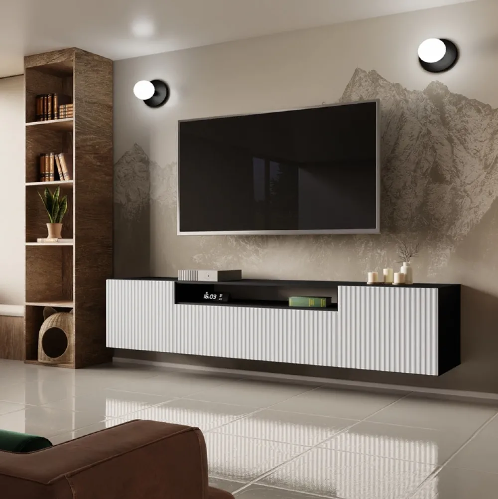 Wisząca szafka RTV TAVIO 200 cm – nowoczesny design i funkcjonalność