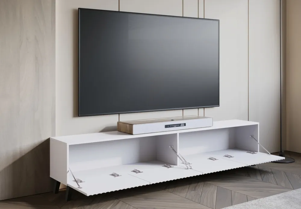 Biała szafka RTV pod telewizor PUNES łączy w sobie estetykę, funkcjonalność i trwałość, a jeśli dodamy do tego solidne wykonanie, otrzymamy mebel idealny do każdego nowoczesnego salonu.