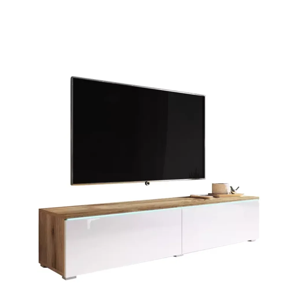 - Stolik rtv w kolorze dąb wotan z białym frontem w połysku.