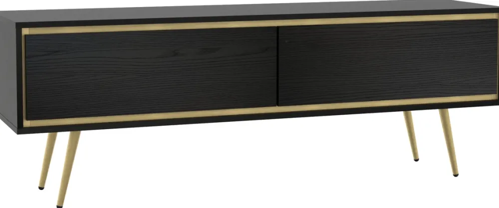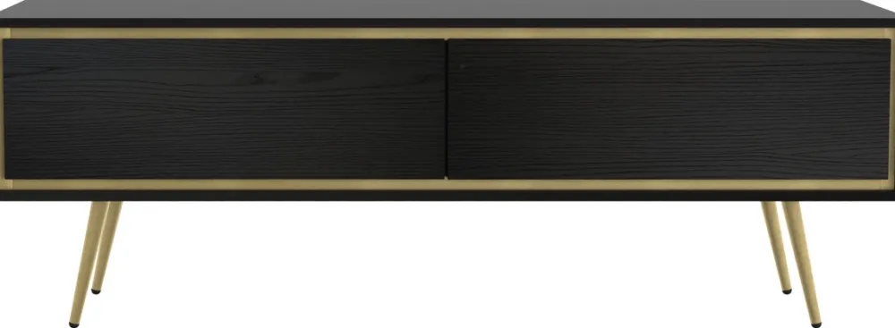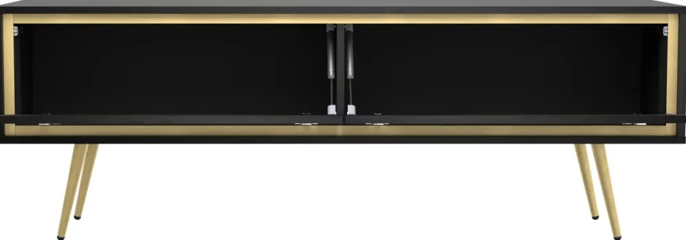 - Długa szafka RTV 150 cm TALUS idealnie odnajdzie się w salonach urządzonych w stylu glamour. Szafka RTV na nóżkach wykonanych z metalu wyposażona została w dwoje drzwi, za którymi znajduje się sporo miejsca na sprzęt multimedialny.