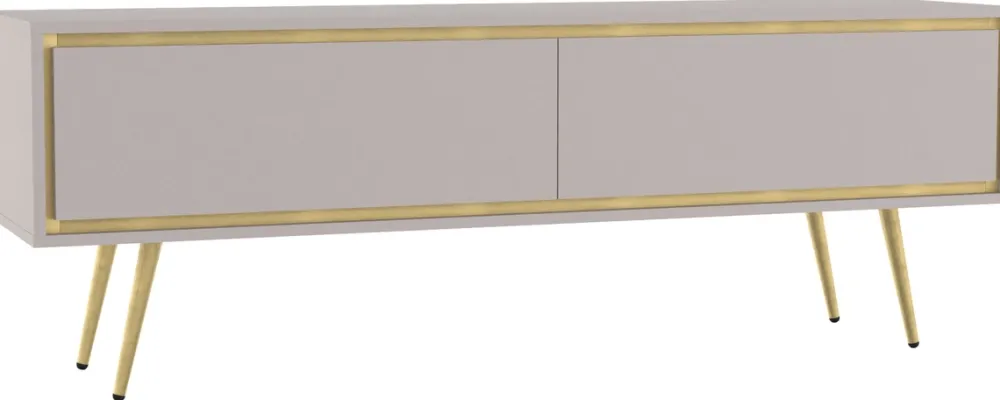 - Długa szafka RTV 150 cm TALUS idealnie odnajdzie się w salonach urządzonych w stylu glamour. Szafka RTV na nóżkach wykonanych z metalu wyposażona została w dwoje drzwi, za którymi znajduje się sporo miejsca na sprzęt multimedialny.