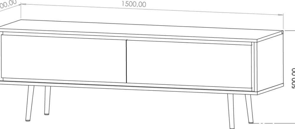 - Szafka RTV ma szerokość 150 cm, co czyni ją idealnym wyborem do przestronnych wnętrz, gdzie doskonale wyeksponuje swój elegancki design i wprowadzi do pomieszczenia odrobinę luksusu.