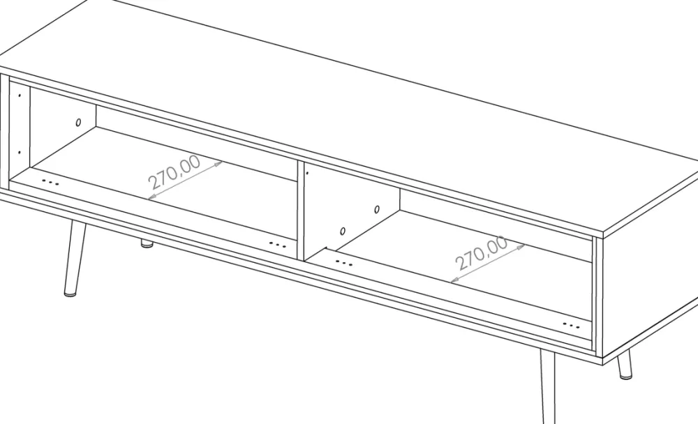 - Korpus szafki RTV wykonano z wytrzymałej płyty laminowanej o grubości 16 mm, a także 22 mm co zapewnia jej solidność oraz odporność na codzienne użytkowanie i zarysowania.