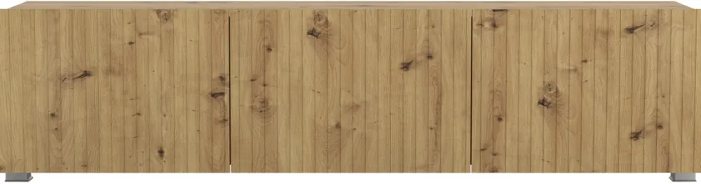 Nowoczesna szafka RTV KORDIS to uniwersalny mebel, który doskonale wpasuje się zarówno w nowoczesne, jak i minimalistyczne wnętrza. Jej elegancka forma i ryflowane fronty nadają wnętrzu wyjątkowego charakteru. Korpus wykonany z płyty laminowanej o grubości 16 mm zapewnia solidność i trwałość, a płyta MDF o tej samej grubości, użyta na frontach, dzięki ryflowaniu nadaje szafce elegancki wygląd i unikalną fakturę.