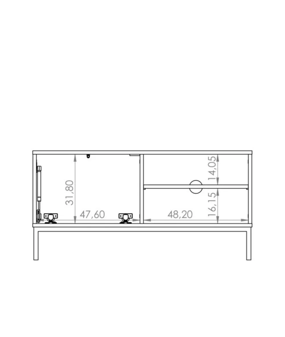 - Tył mebla wykonany z czarnej płyty HDF o grubości 3 mm.