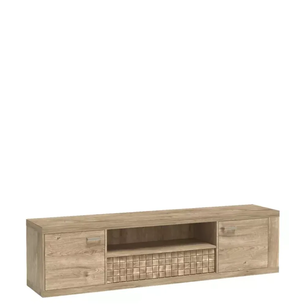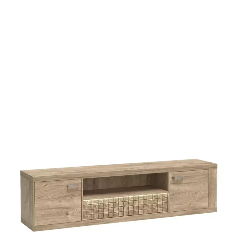 - Szafka RTV NORIENTE posiada 200 cm szerokości, które pozwolą ci na niej umieścić naprawdę duży telewizor. Szafka posiada drzwi po lewej oraz prawej stronie, za każdej z nich znajduje się półka. Natomiast w centralnej części znajduje się wnęka i szuflada.
