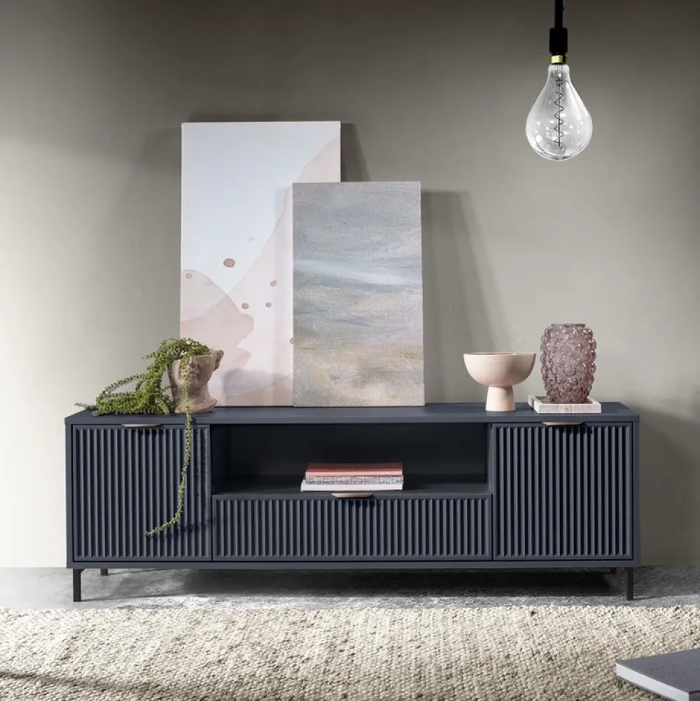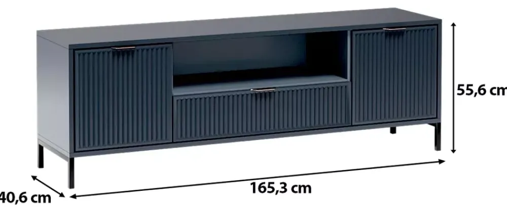 - Nowoczesna szafka RTV LATINA, szeroka na 165 cm, w odcieniu indygo, oferuje wyrafinowane połączenie stylu i funkcjonalności. Dodaj swój salonowi niepowtarzalnego charakteru z tym meblem.