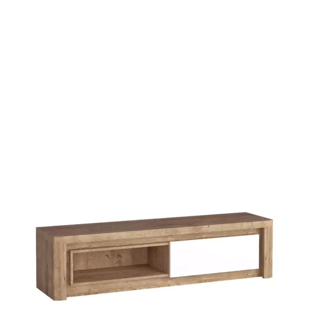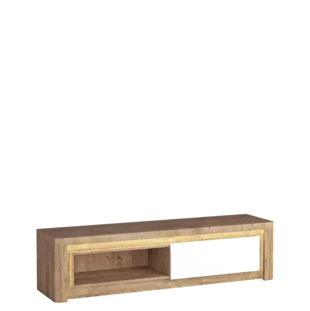 - Szafka RTV LANES posiada drzwi po prawej stronie oraz wnękę po lewej, która doskonale sprawdza się do umieszczenia na niej pamiątek oraz dekorów, dzięki którym można nadać pomieszczeniu własnych akcentów.