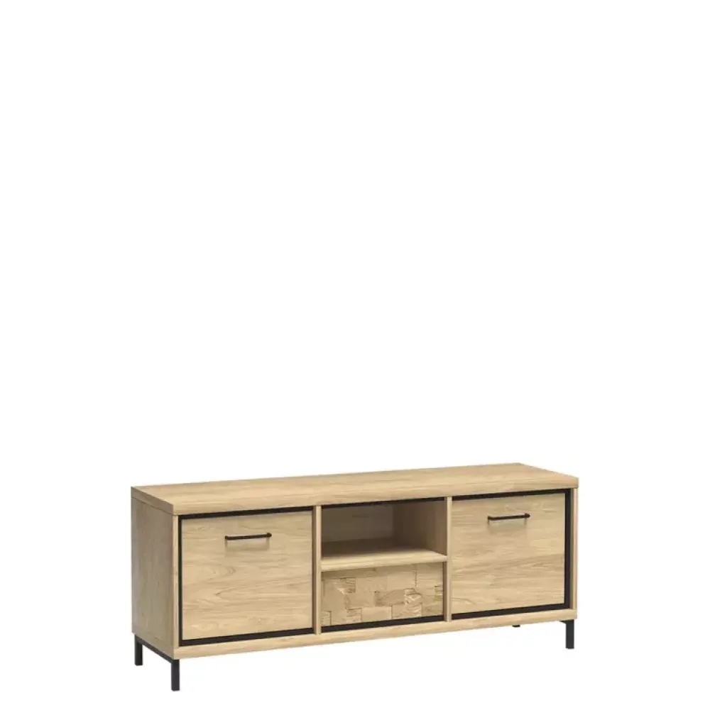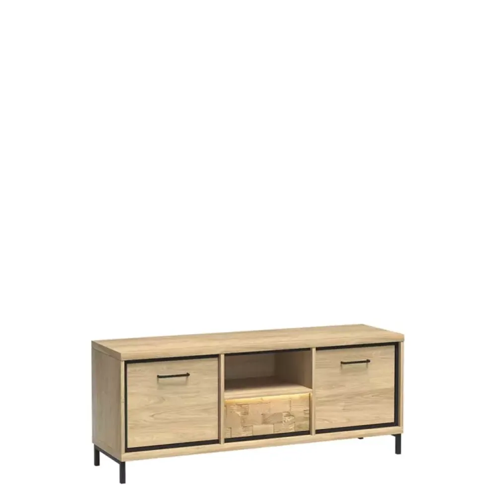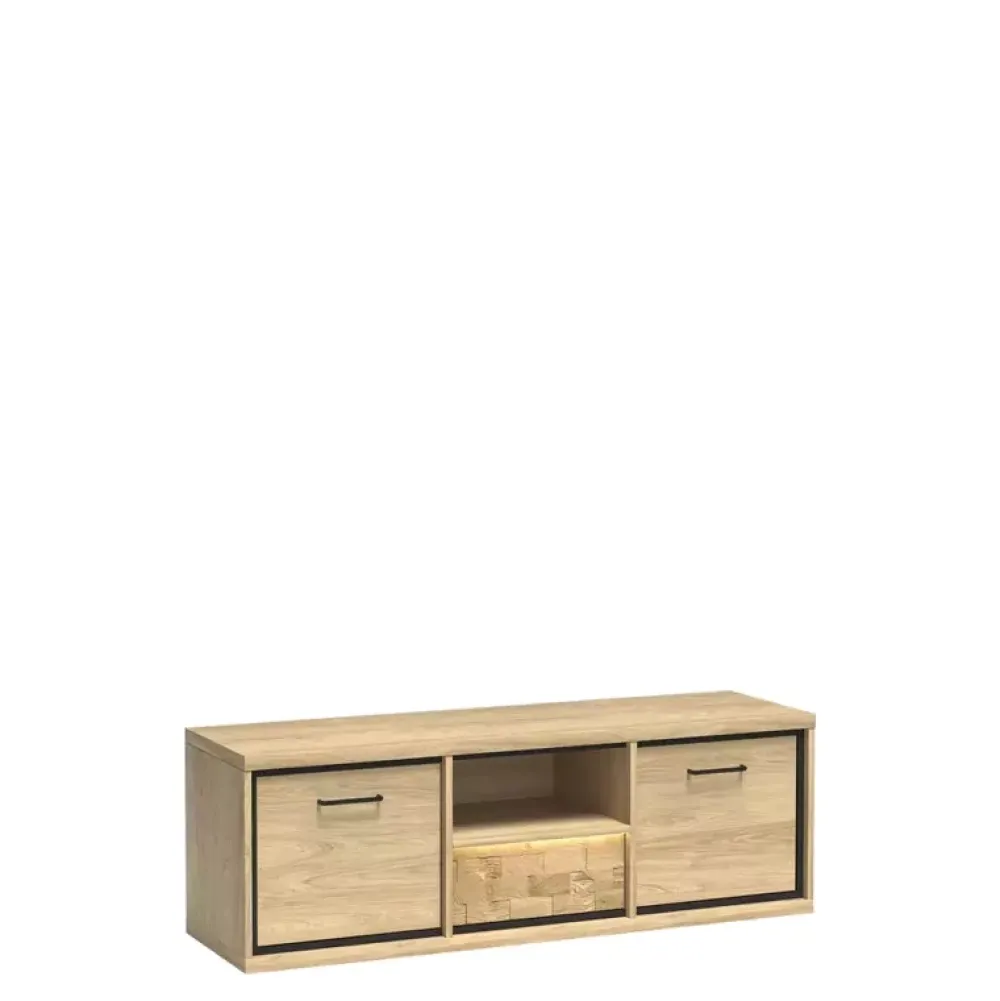 Szafka RTV MORNE jest bardzo pojemną propozycją, która została wyposażona we dwie szafki po bokach, w których znajdują się półki. Dodatkowo w centralnej części została wyposażona w głęboką szufladę, nad którą znajduje się wnęka na której możesz umieścić swoje dekory.