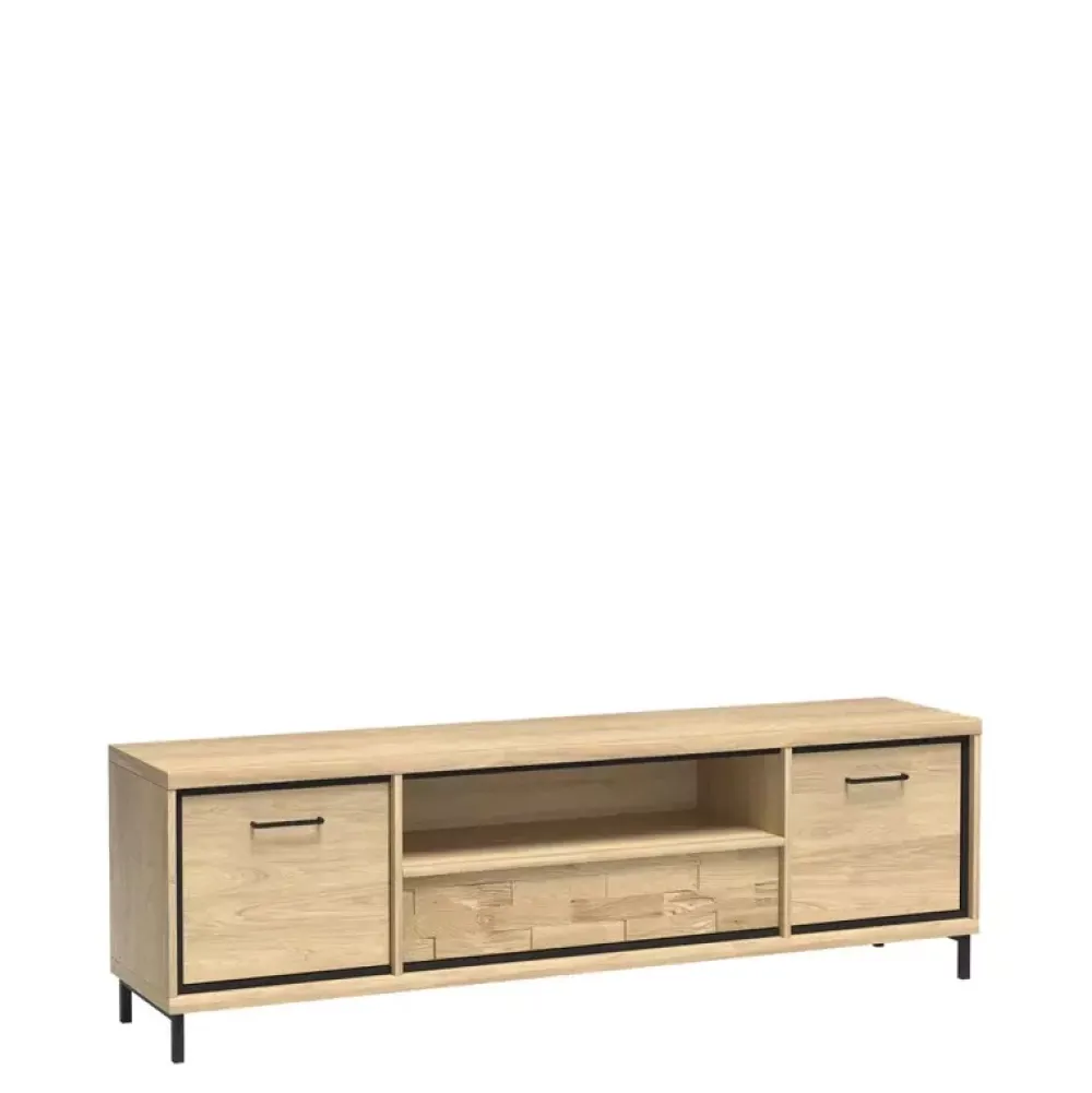 Szafka RTV MORNE jest bardzo pojemną propozycją, która została wyposażona we dwie szafki po bokach, w których znajdują się półki. Dodatkowo w centralnej części została wyposażona w głęboką szufladę, nad którą znajduje się wnęka na której możesz umieścić swoje dekory.