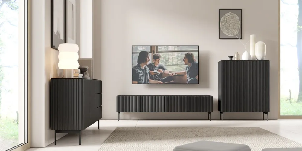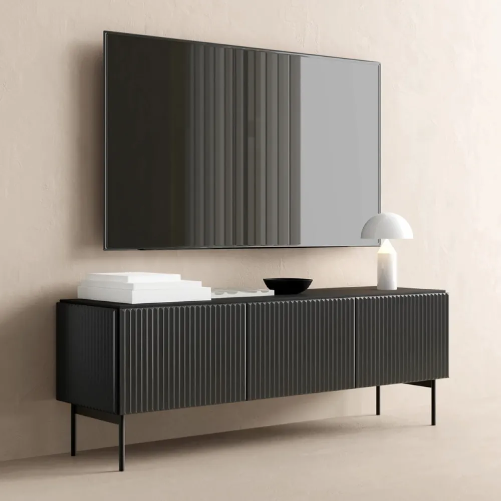 Szafka RTV ryflowana w kolorze czarnym – elegancja i funkcjonalność w nowoczesnym wydaniu