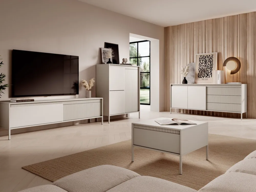 Szafka RTV z frezowanym frontem 153 cm – elegancja i praktyczność w Twoim salonie