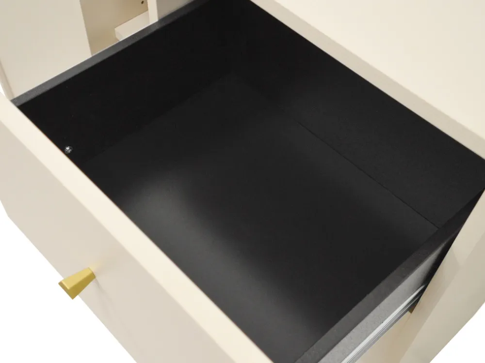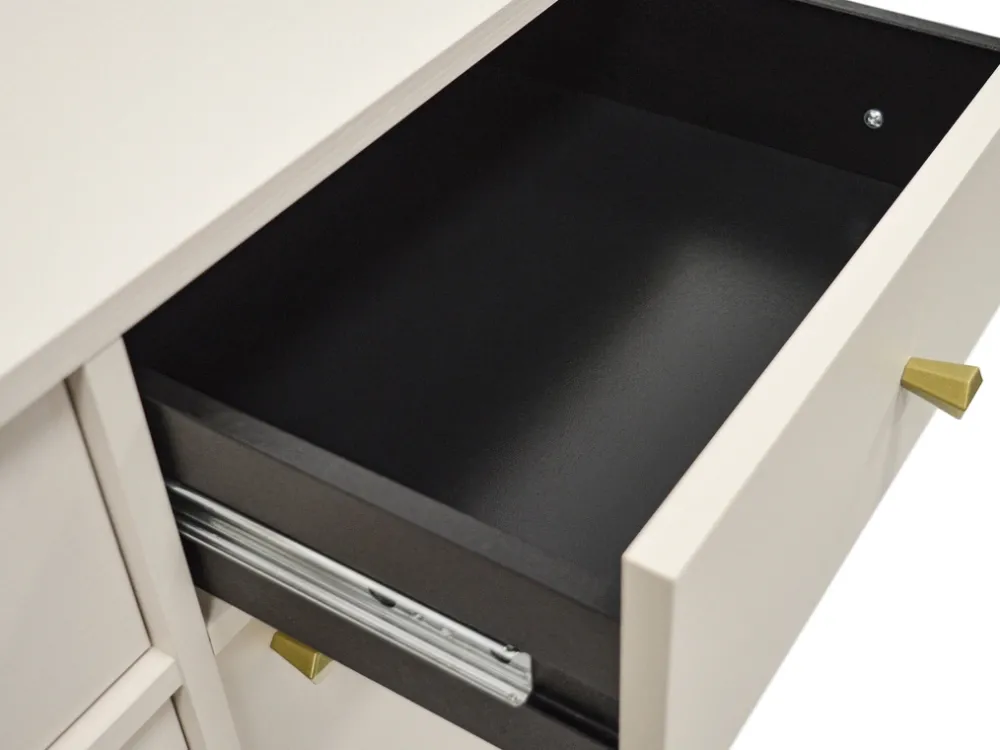 - Szuflada została osadzona na metalowej prowadnicy kulkowej. Prowadnice kulkowe cechuje cicha i płynna praca, oraz gwarancja bezawaryjności.