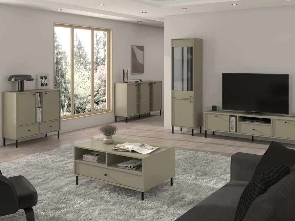 Dzięki nowoczesnemu designowi szafka RTV 180 cm świetnie komponuje się z różnymi stylami wnętrzarskimi – od klasycznych po industrialne. Metalowe nóżki i uchwyty doskonale wpisują się w obecne trendy, nadając meblowi wyjątkowego charakteru. Jej uniwersalna kolorystyka sprawia, że z łatwością dopasujesz ją do pozostałych elementów wystroju.