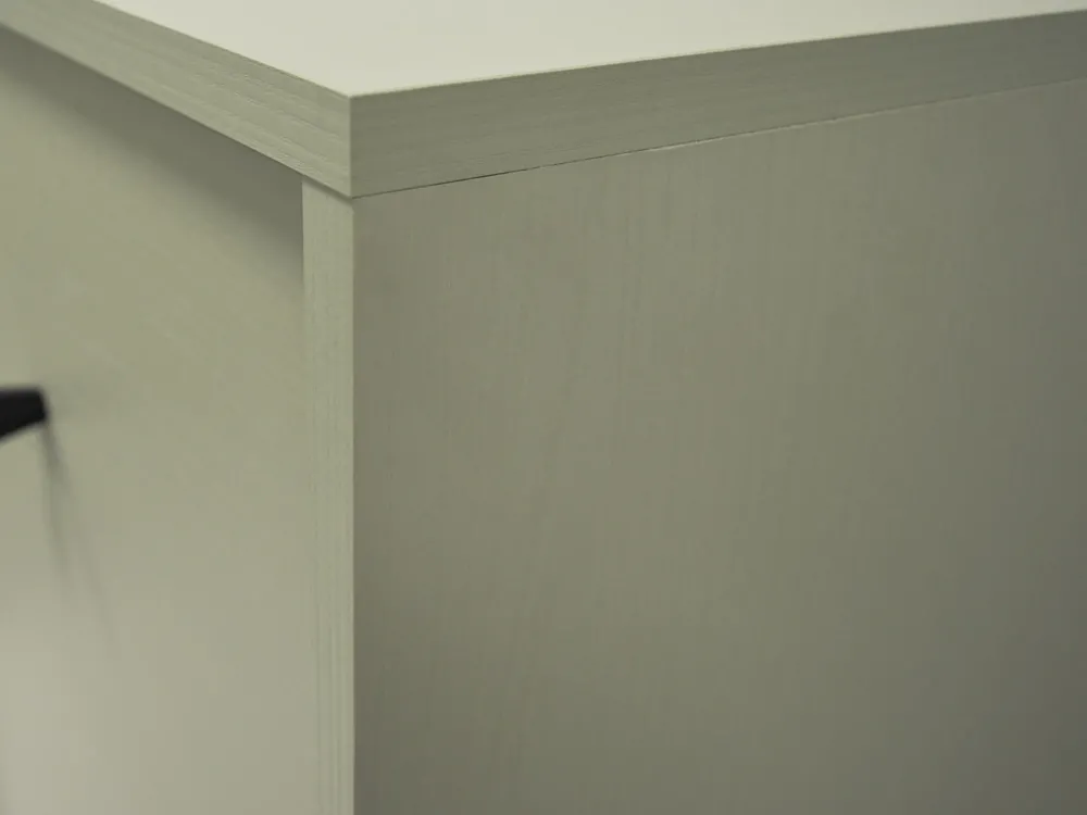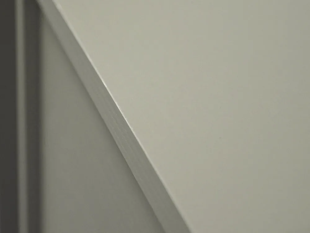 - Obrzeża zostały estetycznie wykończone okleiną ABS. Okleina ABS to sposób na estetyczne wykończenie mebla, dodatkowo gwarantuje odporność na uszkodzenia spowodowane obtarciami.