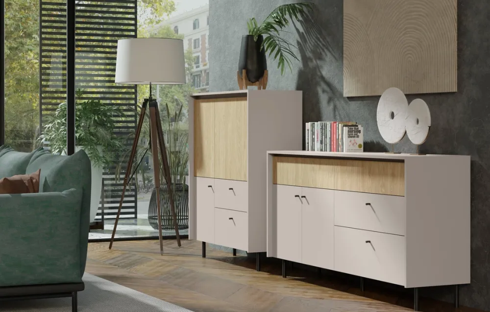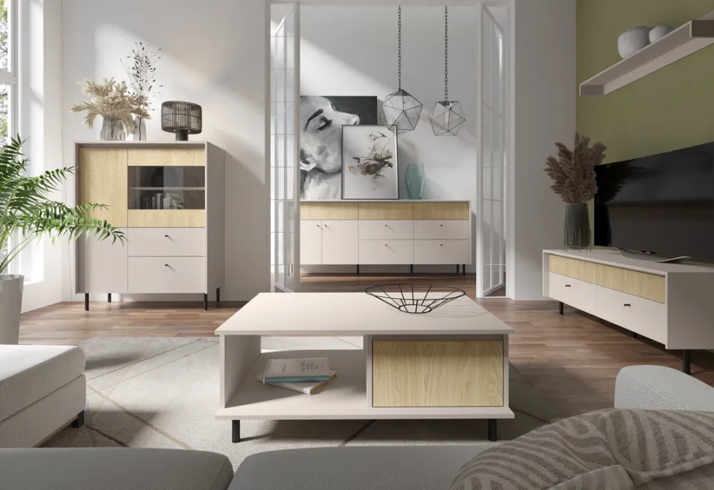 - Nowoczesna kolorystyka – beż piaskowy i dąb olejowany tworzą spokojną i elegancką kompozycję