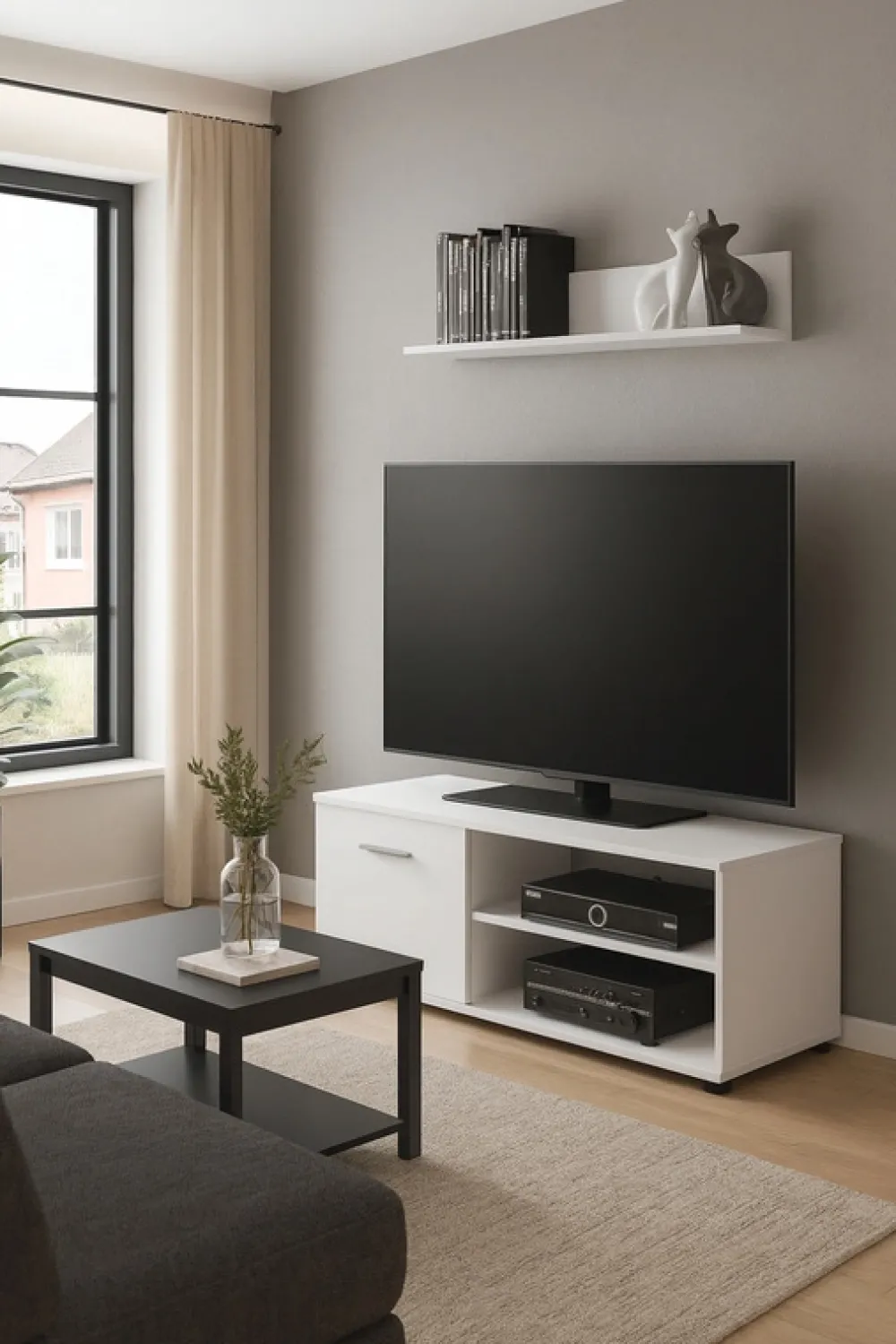 Stolik rtv z kolekcji CUBE XL ma aż cztery praktyczne wnęki do przechowywania. Na jego półkach znajdzie się miejsce na dekoder, czy amplituner do kina domowego. Szafka ma 120 cm szerokości i 40 cm wysokości. Bez względu na to czy telewizor na niej postawisz, czy zawiesisz nad nią, szafka rtv będzie się świetnie prezentować na ścianie Twojego salonu. Biała szafka pod telewizor delikatnie odświeży wnętrze salonu.