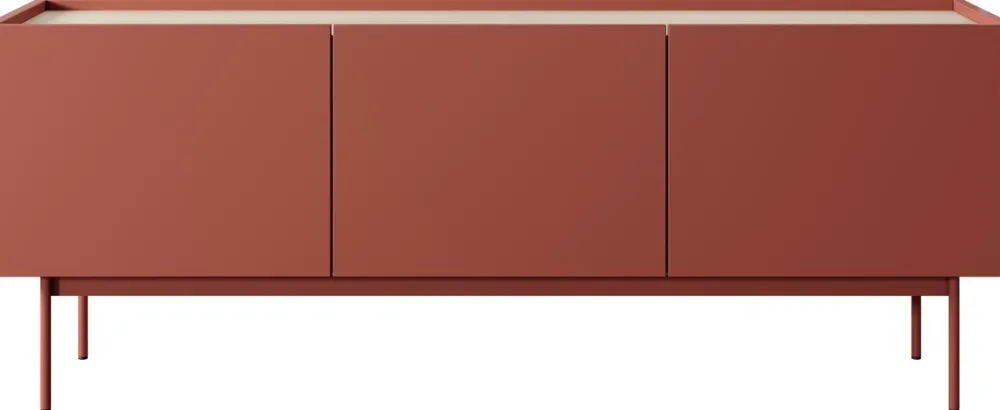 Szafka RTV została wyposażona w trzy drzwi z mechanizmem cichego domyku, które zapewniają bezgłośne i płynne otwieranie. Dzięki temu użytkowanie jest wyjątkowo komfortowe, a mechanizmy wewnętrzne pozostają chronione przed nadmiernym zużyciem. Drzwi otwierają się za krawędź, eliminując potrzebę wystających uchwytów, co podkreśla nowoczesny charakter mebla.