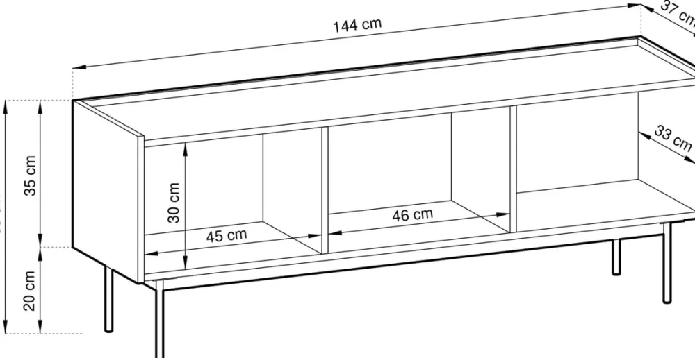 Szafka RTV 144 cm doskonale wpisuje się w aranżacje nowoczesne, skandynawskie oraz industrialne. To mebel, który nie tylko pomieści sprzęt RTV, kable czy akcesoria, ale również stanie się eleganckim elementem dekoracyjnym salonu. Jej kompaktowe wymiary sprawiają, że sprawdzi się zarówno w mniejszych, jak i większych przestrzeniach.