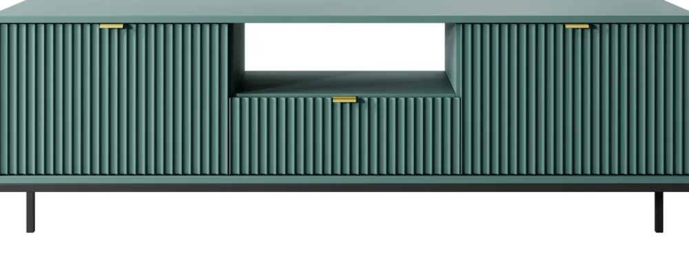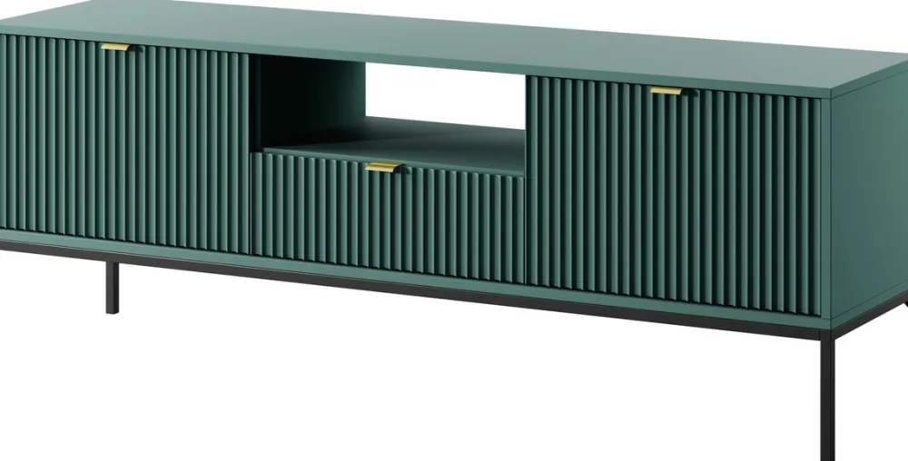 - Szafka RTV AVANTI posiada pojemną szufladę w swojej centralnej części oraz drzwi po prawej i lewej stronie. Szafka pod telewizor doskonale wpisuje się w nowoczesne wnętrza, będąc nietuzinkowym rozwiązaniem, nadającym pomieszczeniu stylu.