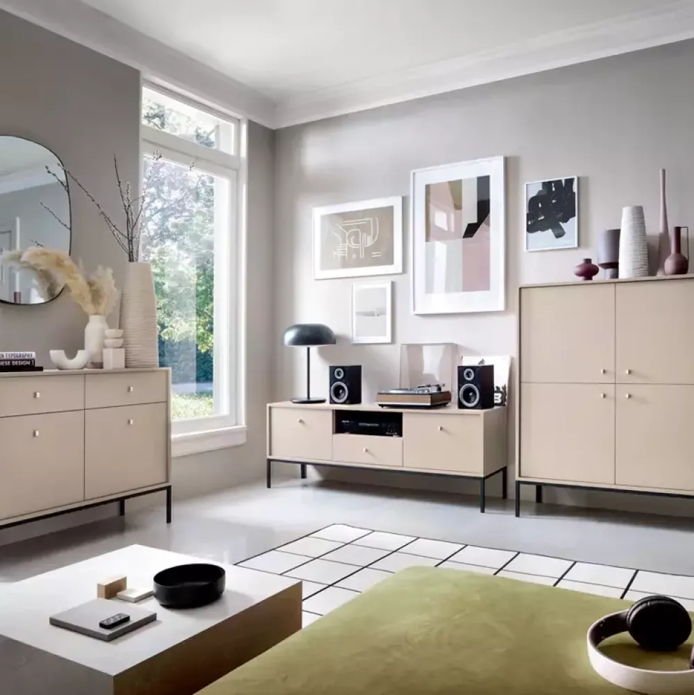 Oto stylowa, nowoczesna szafka RTV MONTI, która stanie się perełką w każdym salonie. Wykonana z wysokiej jakości płyty laminowanej o grubości 16 mm, prezentuje się z niezwykłym wdziękiem. Jej wyjątkowy beżowy kolor sprawia, że jest prawdziwie elegancka i jednocześnie stanowi odważny akcent w każdym pomieszczeniu.