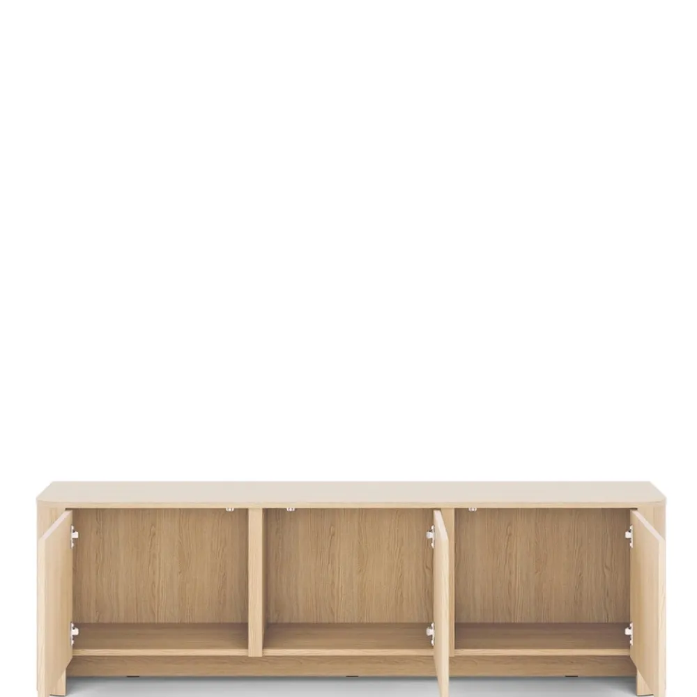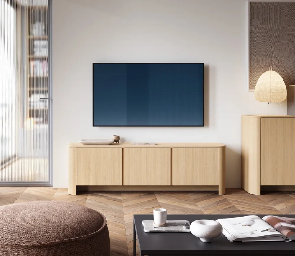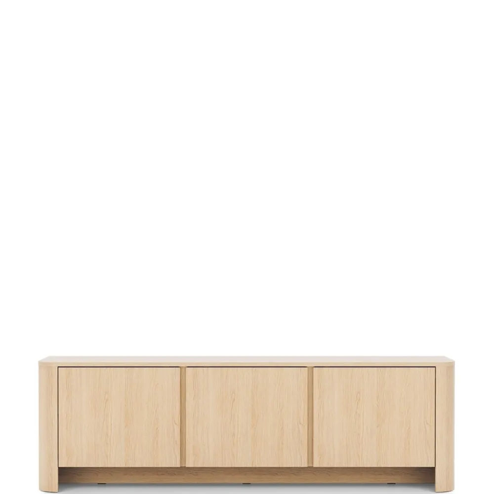 Szafka RTV z kolekcji BELVI w kolorze dąb Vicenza to połączenie nowoczesnego designu i naturalnego uroku drewna. Subtelna linia mebla, zaokrąglone boki oraz bezuchwytowy system otwierania sprawiają, że szafka prezentuje się niezwykle elegancko i harmonijnie. Trzy pojemne komory zapewniają praktyczne miejsce na sprzęt RTV, akcesoria czy dokumenty, pomagając zachować porządek w strefie relaksu.