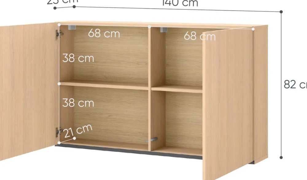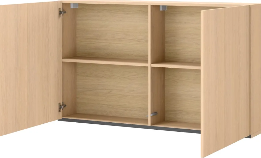 Szafka wisząca WOOW o szerokości 141 cm to idealne rozwiązanie dla nowoczesnych przestrzeni młodzieżowych. Dzięki dwóm zamykanym frontom i czterem pojemnym półkom, z łatwością pomieści książki, gry, zeszyty czy dekoracje. Wykończenie w ciepłym odcieniu dębu Vincenza wprowadza przytulny klimat, a system push to open nadaje całości minimalistycznego charakteru.