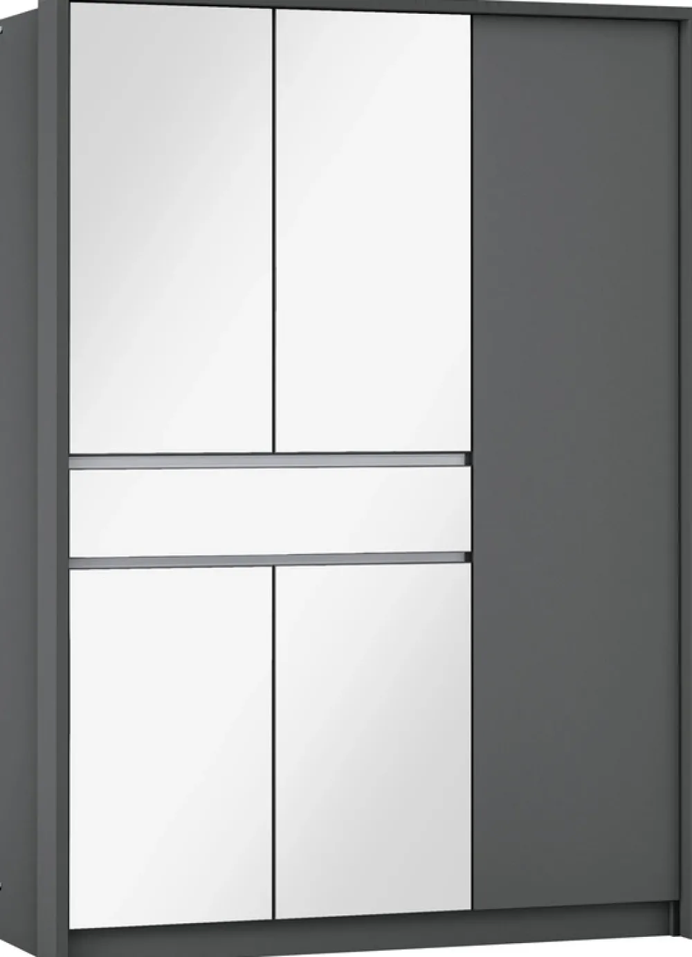 Szafa przesuwna z lustrem o szerokości 150 cm SPARK to kompaktowe, a zarazem funkcjonalne rozwiązanie, które idealnie sprawdzi się w nowoczesnych wnętrzach. Jej starannie zaprojektowany układ zapewnia maksymalną organizację przestrzeni, jednocześnie dodając wnętrzu elegancji i stylu.