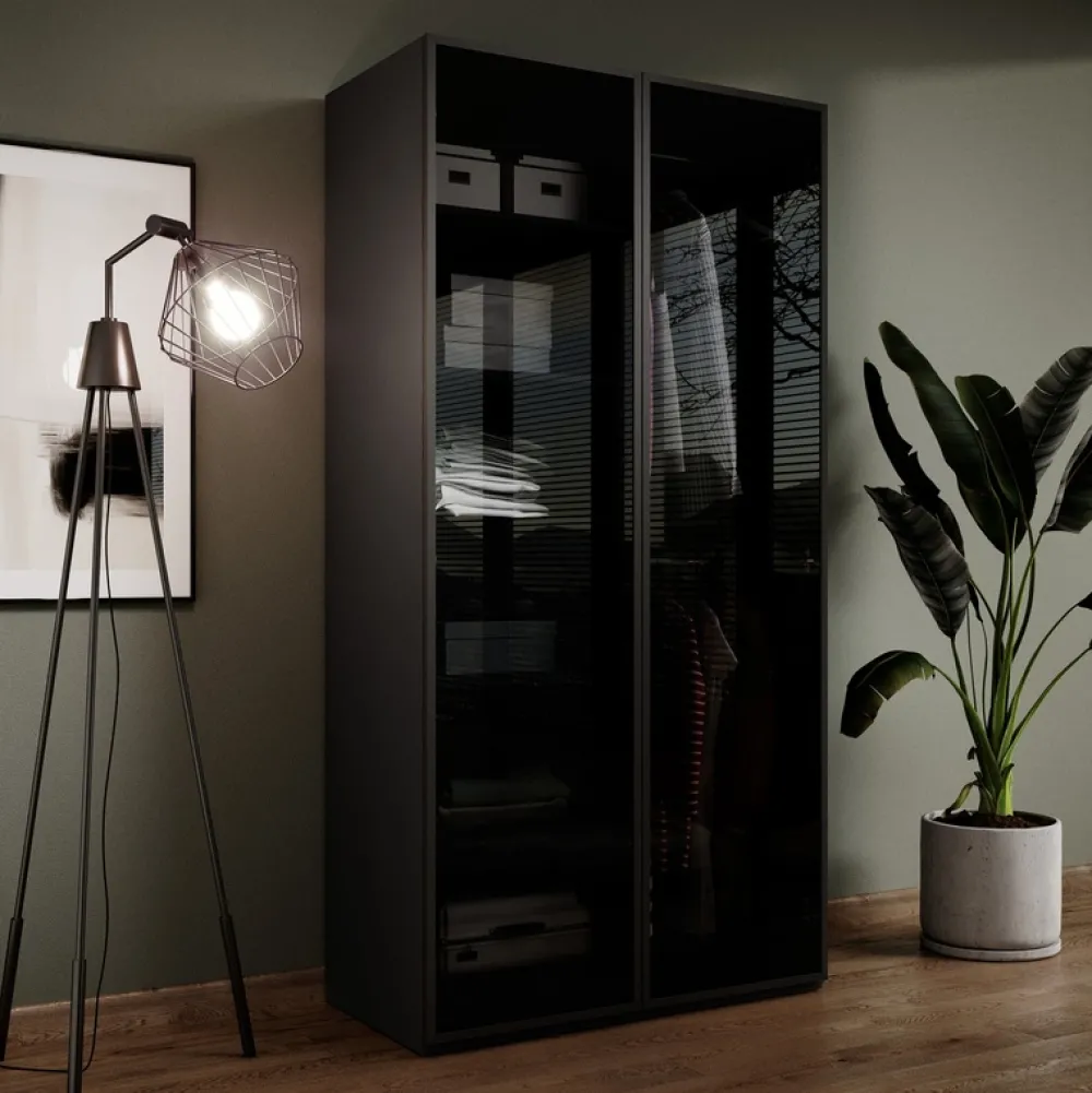 Modułowa szafa SIGMA to idealny wybór dla miłośników nowoczesnego designu i minimalistycznych rozwiązań. Przeszklony front dodaje jej lekkości i elegancji, sprawiając, że wnętrze zyskuje przestronny i stylowy charakter. Transparentne drzwi nadają szafie nowoczesny wygląd, jednocześnie umożliwiając wgląd do wnętrza, co podkreśla piękno przechowywanych ubrań i dodatków.