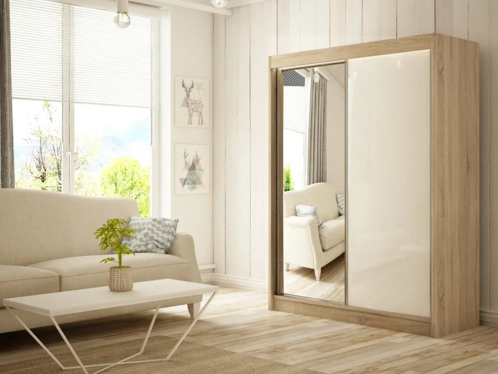 Szukasz stylowej i pojemnej szafy, która pomoże Ci utrzymać porządek? Szafa przesuwna o szerokości 150 cm to doskonałe rozwiązanie do sypialni, przedpokoju czy garderoby. Dzięki praktycznemu wnętrzu i solidnemu wykonaniu oferuje nie tylko wygodę, ale także trwałość na lata.