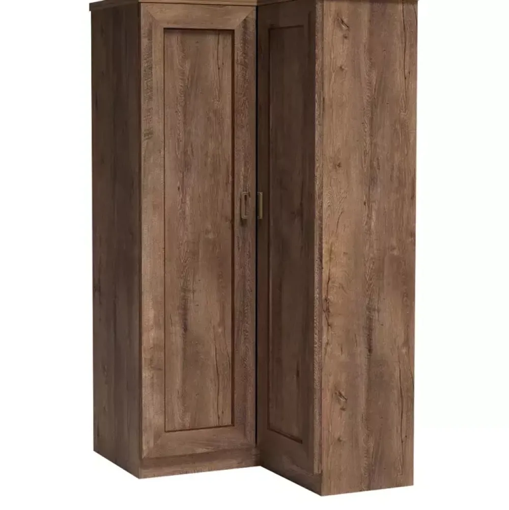 Szafa narożna TAVIER to bardzo pojemna propozycja przeznaczona dla osób ceniących odpowiedzialne zagospodarowanie przestrzenią. Szafa została wyposażona w drążek na wieszaki, nad którym znajduje się półka, natomiast po prawej stronie swoje miejsce znalazło pięć poziomów, na których możesz umieścić swoje ubrania bądź niezbędne akcesoria.