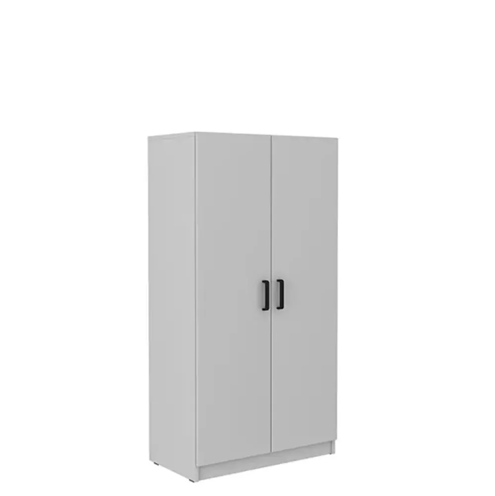 Niska szafa dwudrzwiowa MULL o szerokości 79,9 cm posiada sześć półek z płyty laminowanej, na której bez problemu ustawisz segregatory, czy teczki z dokumentacją, ponieważ wysokości między półkami wynoszą od 33 do 35 cm. Drzwi uchylne zostały ozdobione czarnymi, metalowymi uchwytami, które nadają nieco loftowego charakteru tej szafie do biura.