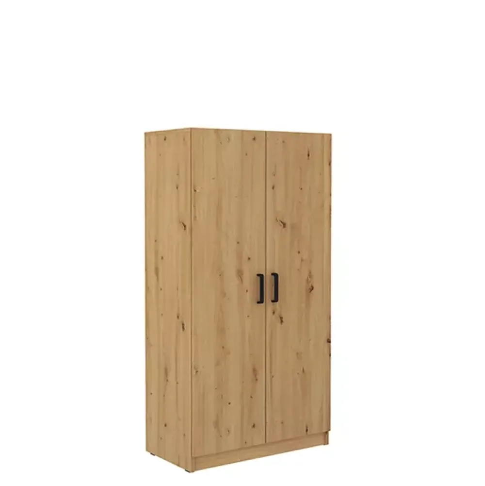 - Szafa uchylna o szerokości 79,9 cm została wyposażona w sześć półek, co daje osiem wnęk o szerokości 372 mm. Szafa dwudrzwiowa posiada metalowe uchwyty