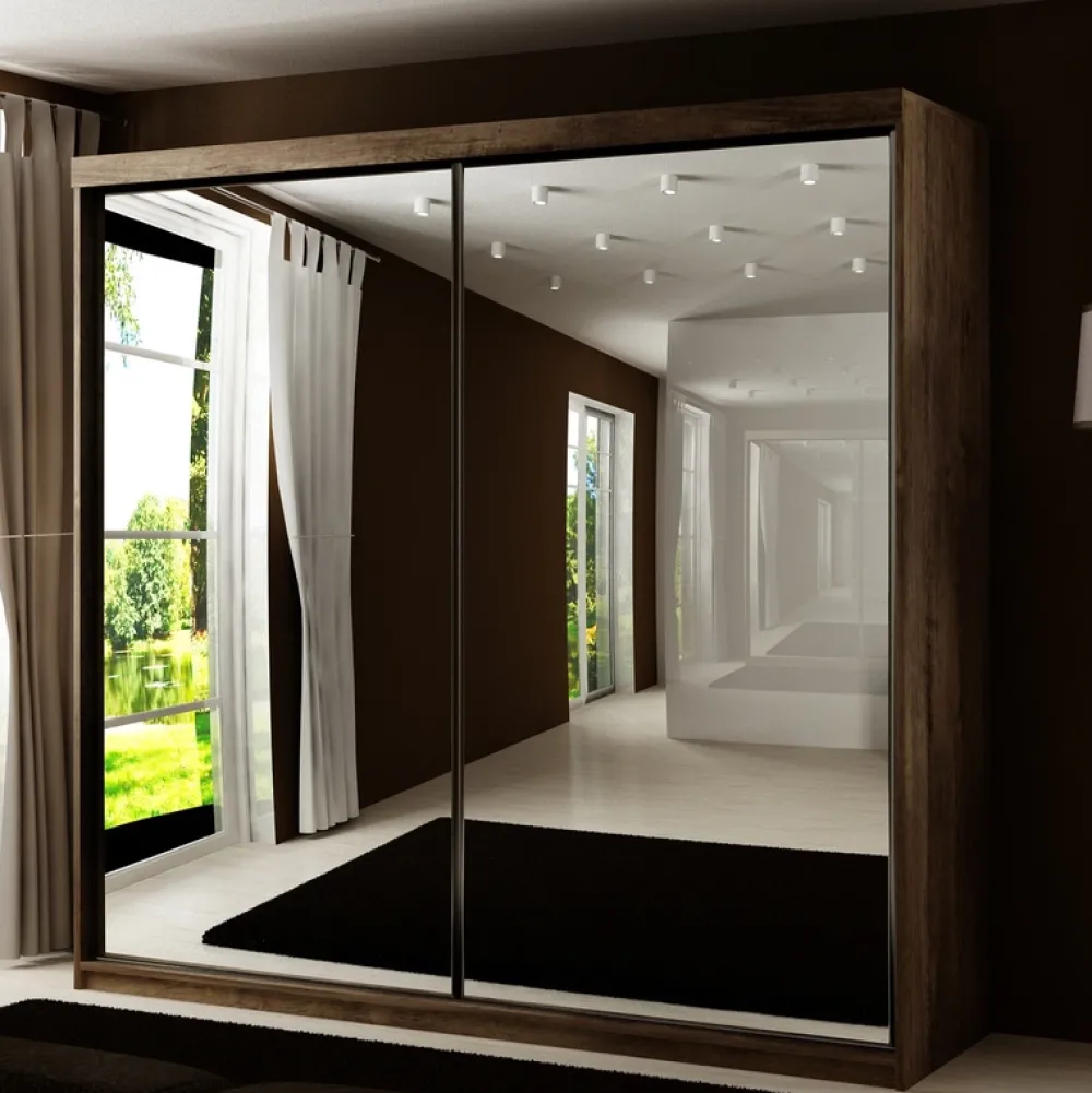 Szafa przesuwna TARO w odcieniu jesion ciemny to mebel, który doda wnętrzu charakteru i szyku. Głęboki, szlachetny kolor w połączeniu z lustrami na frontach tworzy efektowną całość. Dzięki szerokości 200 cm oraz przemyślanemu wnętrzu bez trudu pomieści rozbudowaną garderobę.