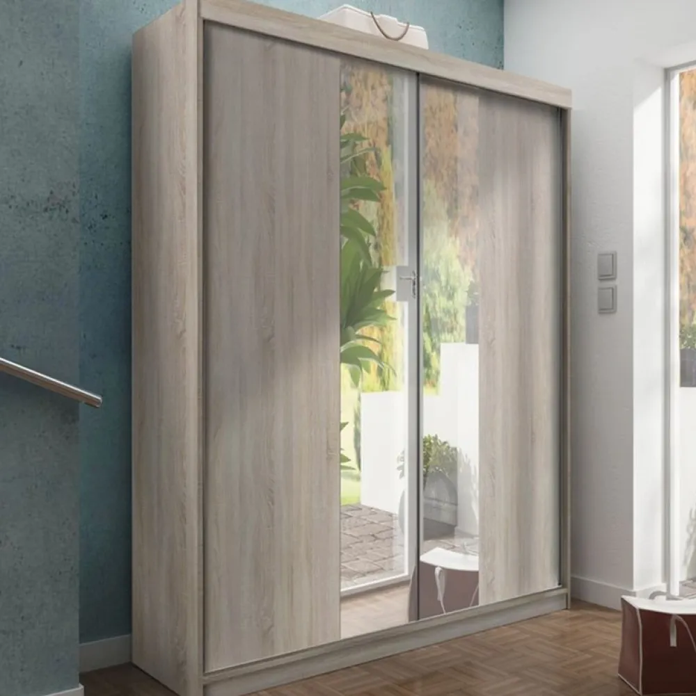 - Szafa przesuwna TARO 150×200×62 cm w dekorze dąb sonoma. Wykonana z płyty laminowanej16 mm z lustrzanymi frontami. Wyposażona w aluminiowe prowadnice, krawędzie PCV i stópki 2 cm. Wnętrze z półkami i drążkiem zapewnia optymalną organizację ubrań.