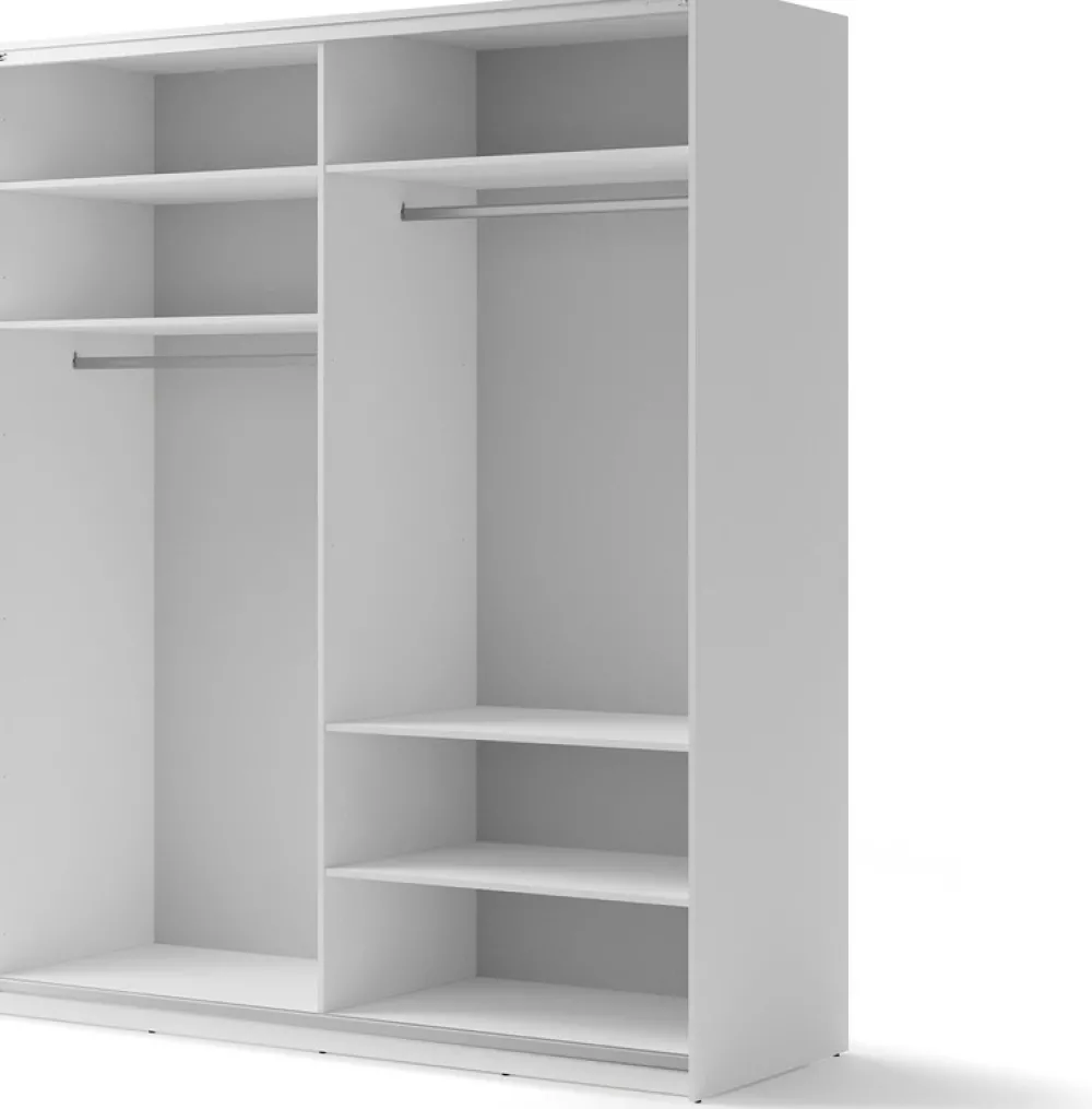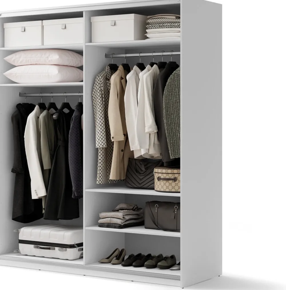 Szafa przesuwna MAXI to wyjątkowy mebel, który łączy w sobie funkcjonalność i elegancję, stanowiąc doskonały wybór dla osób pragnących zorganizować swoją przestrzeń w stylowy i praktyczny sposób. Dzięki przemyślanemu układowi wnętrza, szafa oferuje dwa drążki na ubrania, które umożliwiają wygodne wieszanie odzieży, zapobiegając jej gnieceniu, oraz zestaw przestronnych półek, idealnych do przechowywania złożonych ubrań, akcesoriów, a także obuwia.