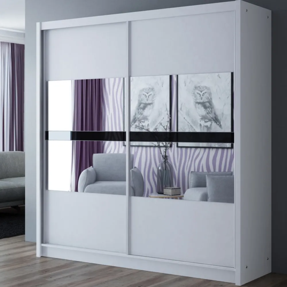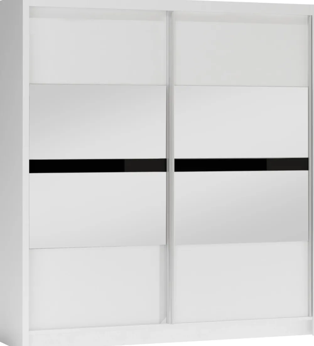 Szafa przesuwna o szerokości 203 cm BREGO to stylowe i funkcjonalne rozwiązanie, które doskonale wpasuje się w każde wnętrze, wprowadzając do niego elegancję i porządek. Dzięki przesuwnym drzwiom z lustrem ten mebel nie tylko optycznie powiększa przestrzeń, ale również zapewnia wygodny dostęp do całej zawartości, co jest szczególnie praktyczne w mniejszych pomieszczeniach.