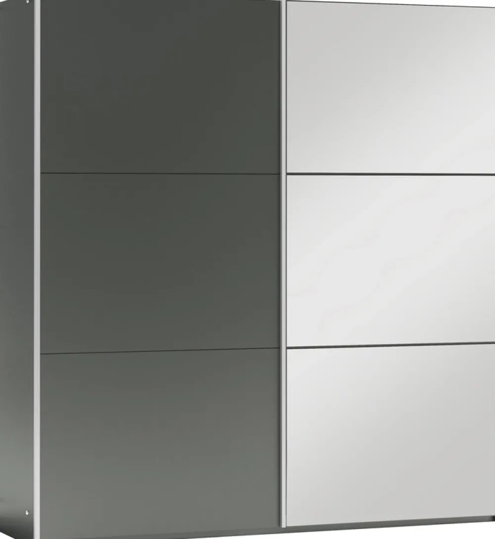 - Szafa przesuwna 225 cm VASCO posiada pięć półek po lewej i prawej stronie. W środkowej części mebla znajdują się dwa drążki na wieszaki. Prawe drzwi zostały wzbogacone o lustro, które optycznie powiększa oraz rozjaśnia pomieszczenie.
