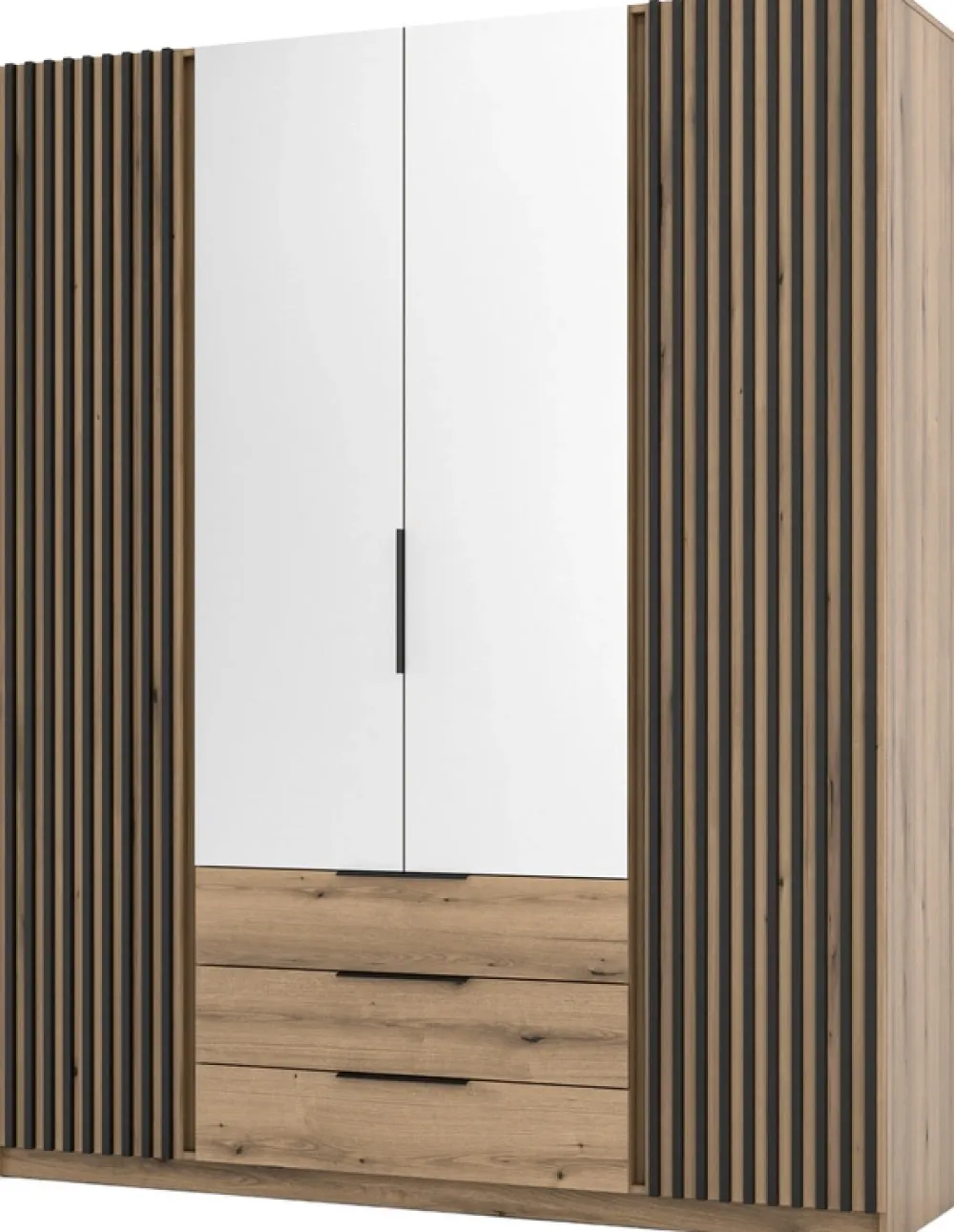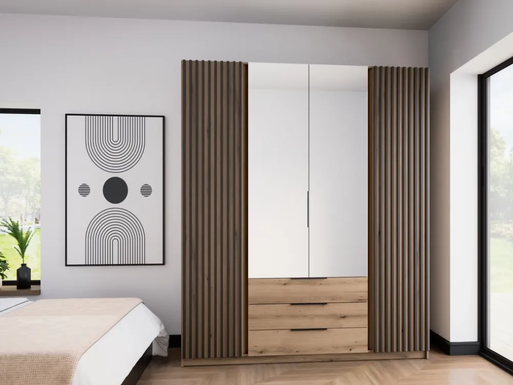 Nasza nowa szafa z lustrem KARAT to kwintesencja stylu połączona z niezawodną funkcjonalnością. Mająca 200 cm wysokości, ta imponująca konstrukcja oferuje wyjątkowe rozwiązania do przechowywania, które zaspokoją nawet najbardziej wymagające potrzeby. Wyposażona w cztery solidne drzwi na zawiasach puszkowych, szafa gwarantuje łatwy dostęp do zawartości bez ryzyka przypadkowego uszkodzenia.