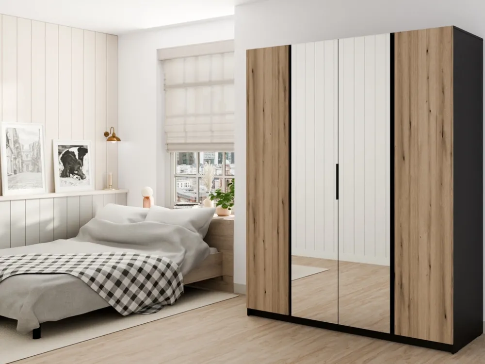 Zainwestuj w naszą szafę z lustrem do sypialni i ciesz się uporządkowaną, elegancką przestrzenią, która zaspokoi wszystkie Twoje potrzeby przechowywania. Zapewnij sobie i swoim ubraniom komfort na najwyższym poziomie!