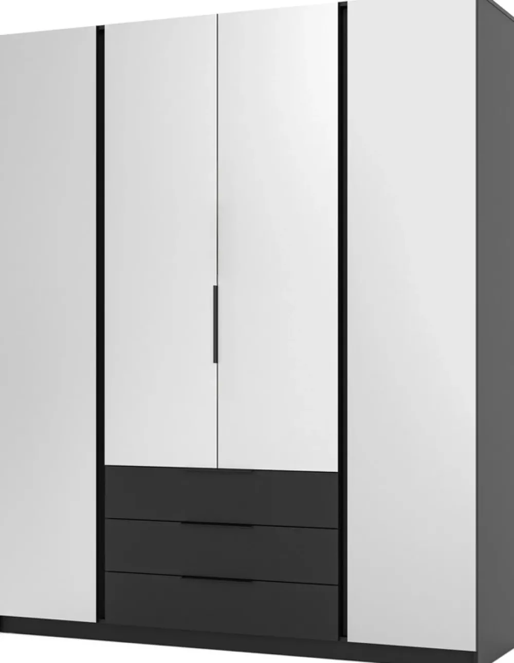 Szafa wyposażona jest w cztery przestronne, drzwi z lustrem, osadzone na solidnych zawiasach puszkowych. Lustra optycznie powiększają przestrzeń i dodają światła, co jest doskonałym rozwiązaniem szczególnie w mniejszych pomieszczeniach. Ich pełna powierzchnia pozwala na wygodne oglądanie całej sylwetki.